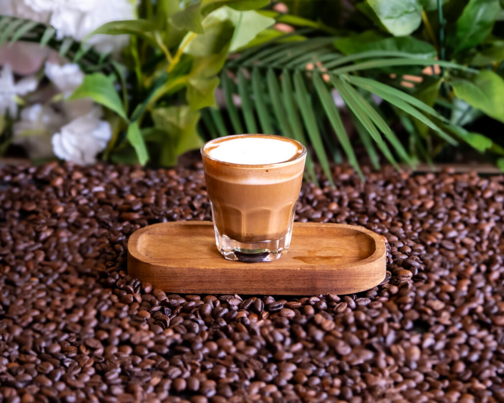 İçindekiler:Süt, süt köpüğü ve espresso.